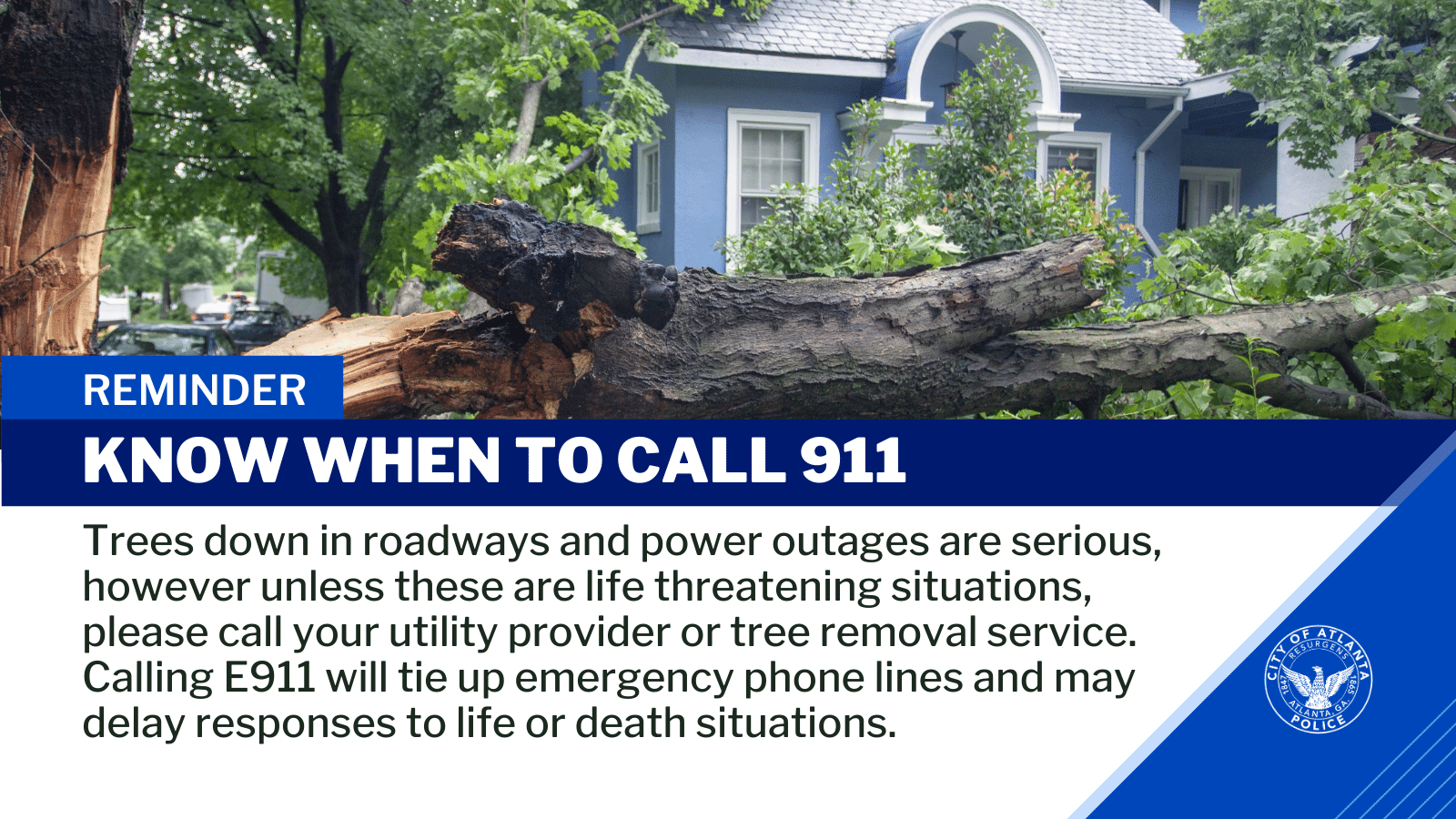 Atlanta Police Department Sur Twitter The E911 Center Has Been Bombarded With Calls About Power Outages Amp Trees Down We Want To Keep The 911 Emergency Lines Open For Life Threatening Amp